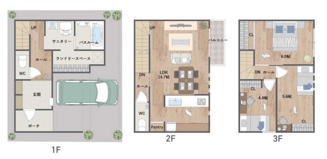 敷地の有効活用ができる3階建ての注文住宅。都市部ならではの施工事例です。