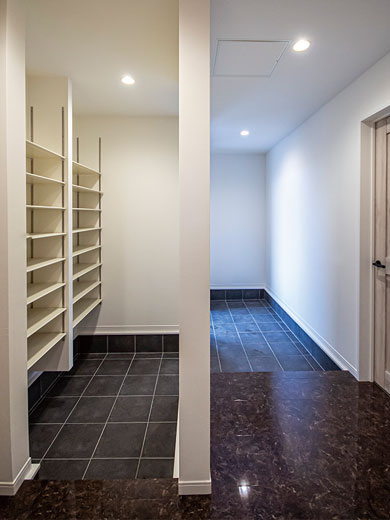 上がり框を2箇所設けた2WAY動線になっているので、お出かけの支度や来客時に人の行き来がスムーズになります。