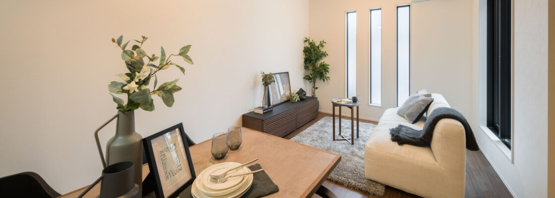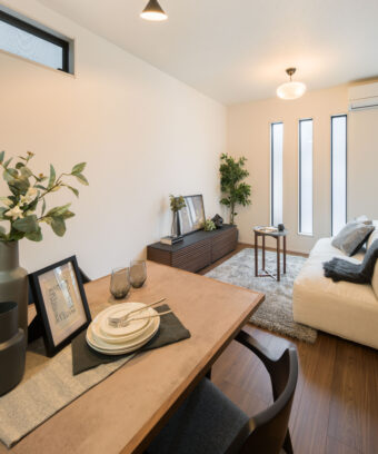 リビングは開放感のある吹き抜けになっており、上部の窓から入る光を十分に取り込むことができます。