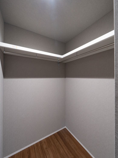 1階に大型のファミリークローゼットを完備。帰宅後すぐにコートやバッグ、帽子をしまえるため、ウイルスや花粉を居室に持ち込まず衛生的です。