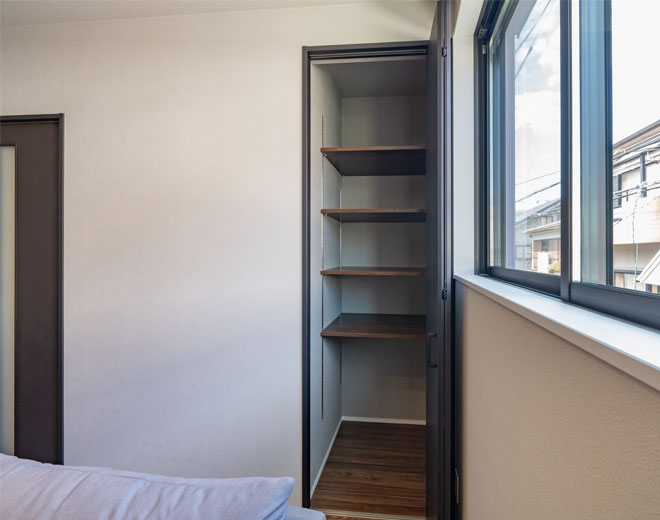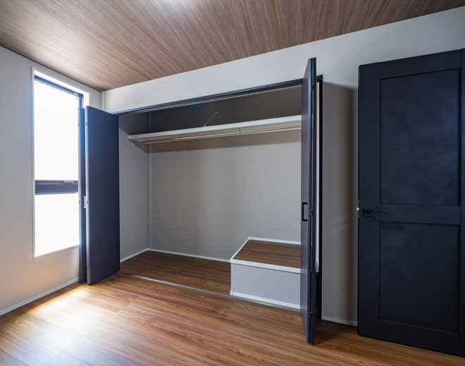 全ての洋室に収納スペースを設けました。季節の衣類やかさばる布団もしっかり収納できるため、お部屋を広々と有効活用できます。