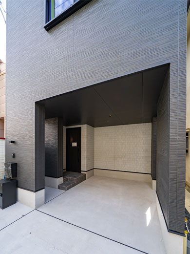 黒を基調とした重厚感あふれる外観デザイン。落ち着いた佇まいが、住まう人の気品とステータスを静かに物語ります。