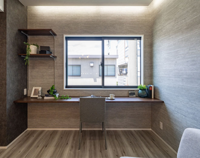 就寝前の読書やデスクワークに最適な、静かなプライベート空間です。集中しやすい環境で、寝室にいながら自分だけの時間をゆったりと過ごせる、大人の隠れ家のようなゆとりが魅力です。