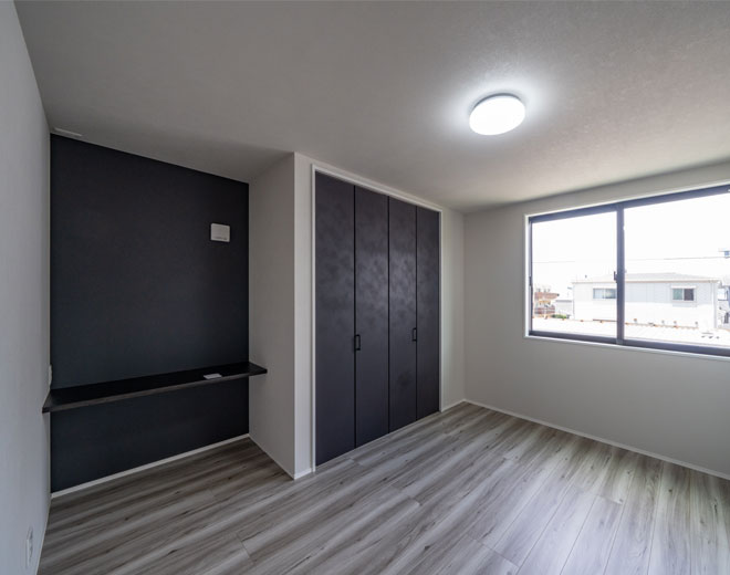 各室に収納があることで、個人の荷物を自室で完結して管理できます。居住スペースに物が溢れず、部屋本来の広さを最大限に活用できるため、家族全員がゆとりを持って過ごせる住まいです。