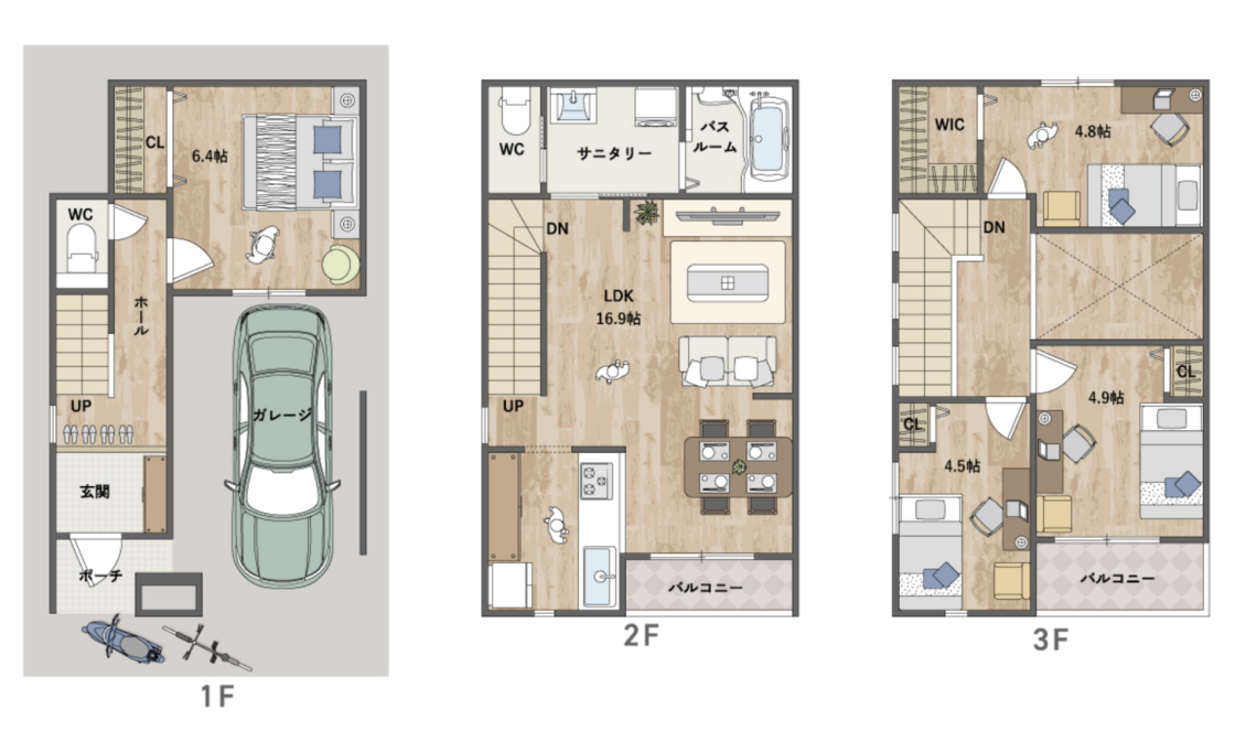 敷地の有効活用ができる3階建ての注文住宅。都市部ならではの施工事例です。