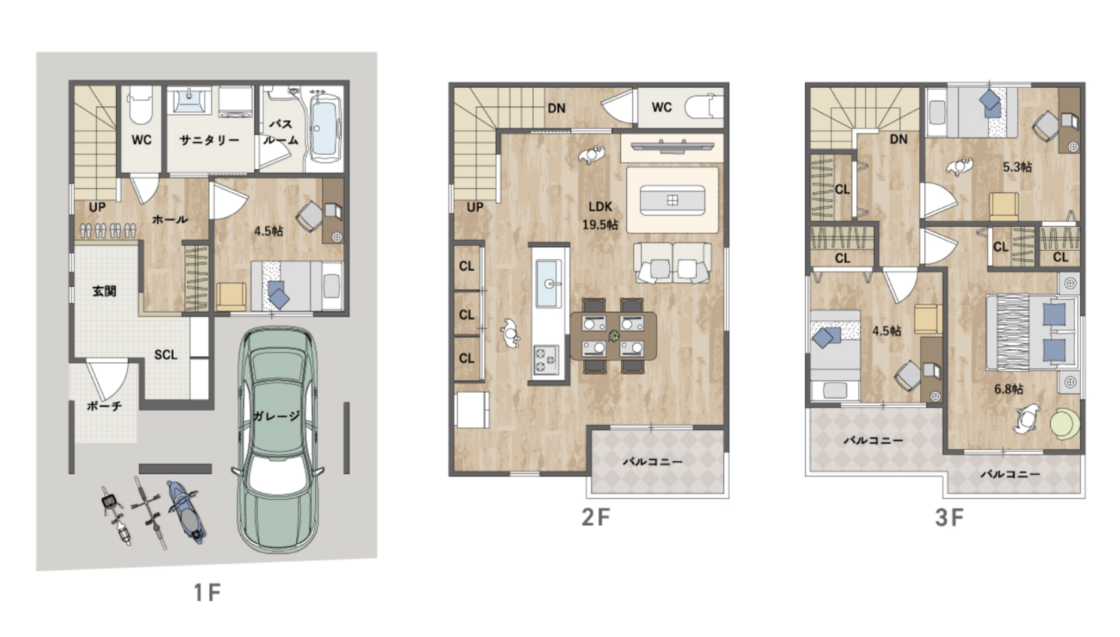 敷地の有効活用ができる3階建ての注文住宅。都市部ならではの施工事例です。