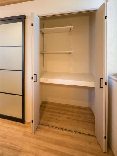 全ての居室にクローゼットを完備しました。家族それぞれの衣類や荷物を個室にしっかり収納できるため、共有スペースに物が溢れず、家中をいつも広々と美しく保てます。