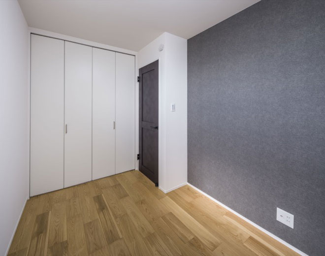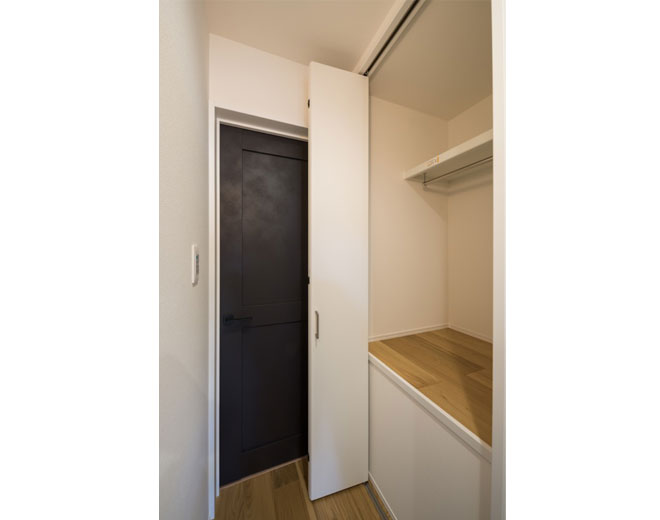 全ての居室に収納空間を完備しました。棚やハンガーパイプを活用した見せる収納でお洒落に整理でき、居住空間を常に広く綺麗に使うことができます。