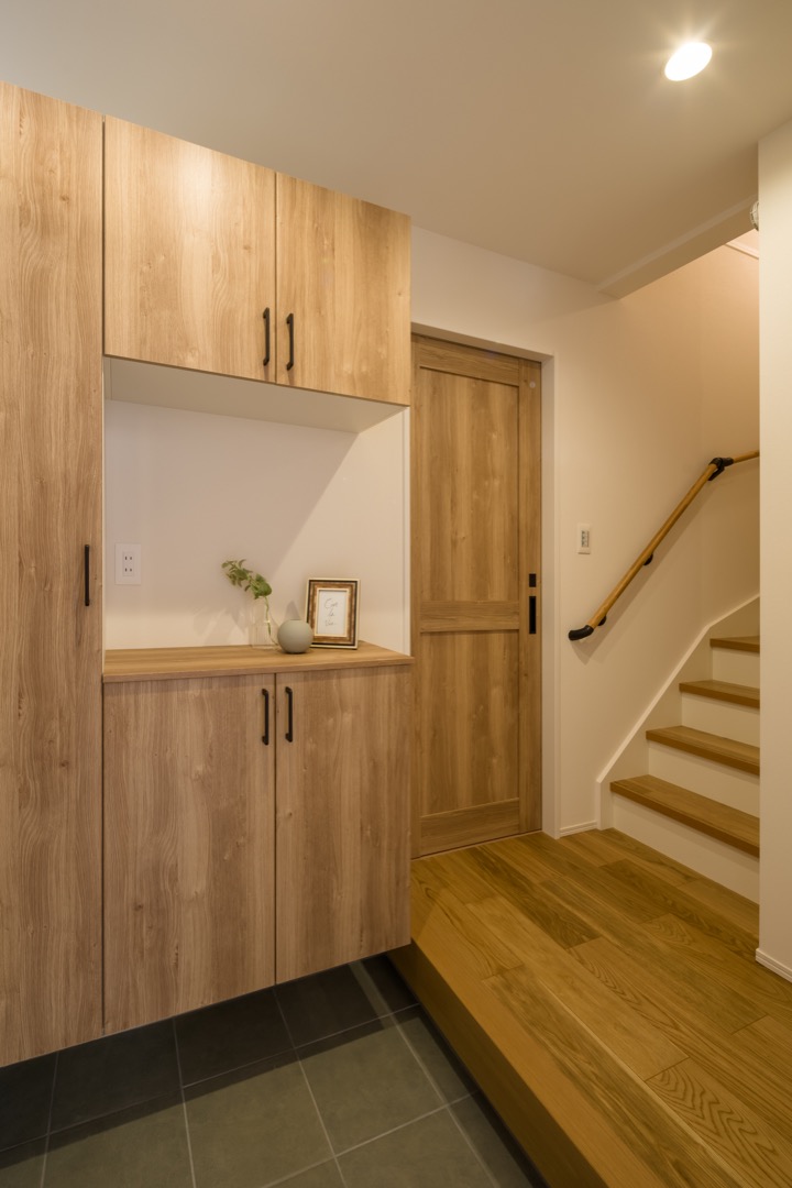 階段を上がった先の3階ホールにも共用の収納スペースを確保しました。家族で使う備品や季節家電などをまとめて収納できる、大変便利なスペースです。