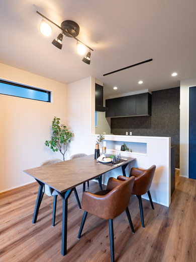 料理を出しやすい対面キッチンで、家族と会話しながら食事をすることができます。家族と一緒に過ごす時間が一層増えます。