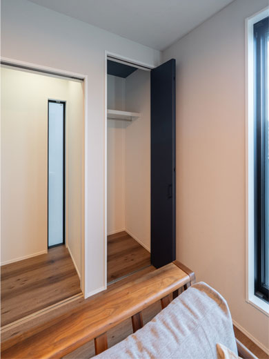 部屋にクローゼットを完備しているため、新たにキャビネットなどの収納家具を置く必要がありません。季節の洋服などを十分に収納でき、部屋を常に広々と美しく保てます。