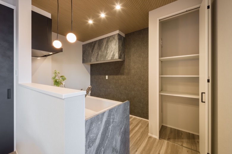 食料品のストックや使用頻度の低い調理家電をまとめて収納できるパントリー。キッチン周りの生活感を隠せるため、いつでも美しいキッチンを維持できます。