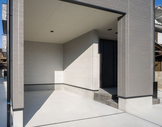 雨風や紫外線から大切な愛車を守るインナーガレージ。雨の日でも濡れずに室内へ移動でき、荷物の出し入れもスムーズです。