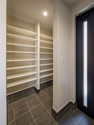 家族全員の靴はもちろん、ベビーカーやゴルフバッグなどのアウトドア用品もすっぽり収まる大容量スペース。