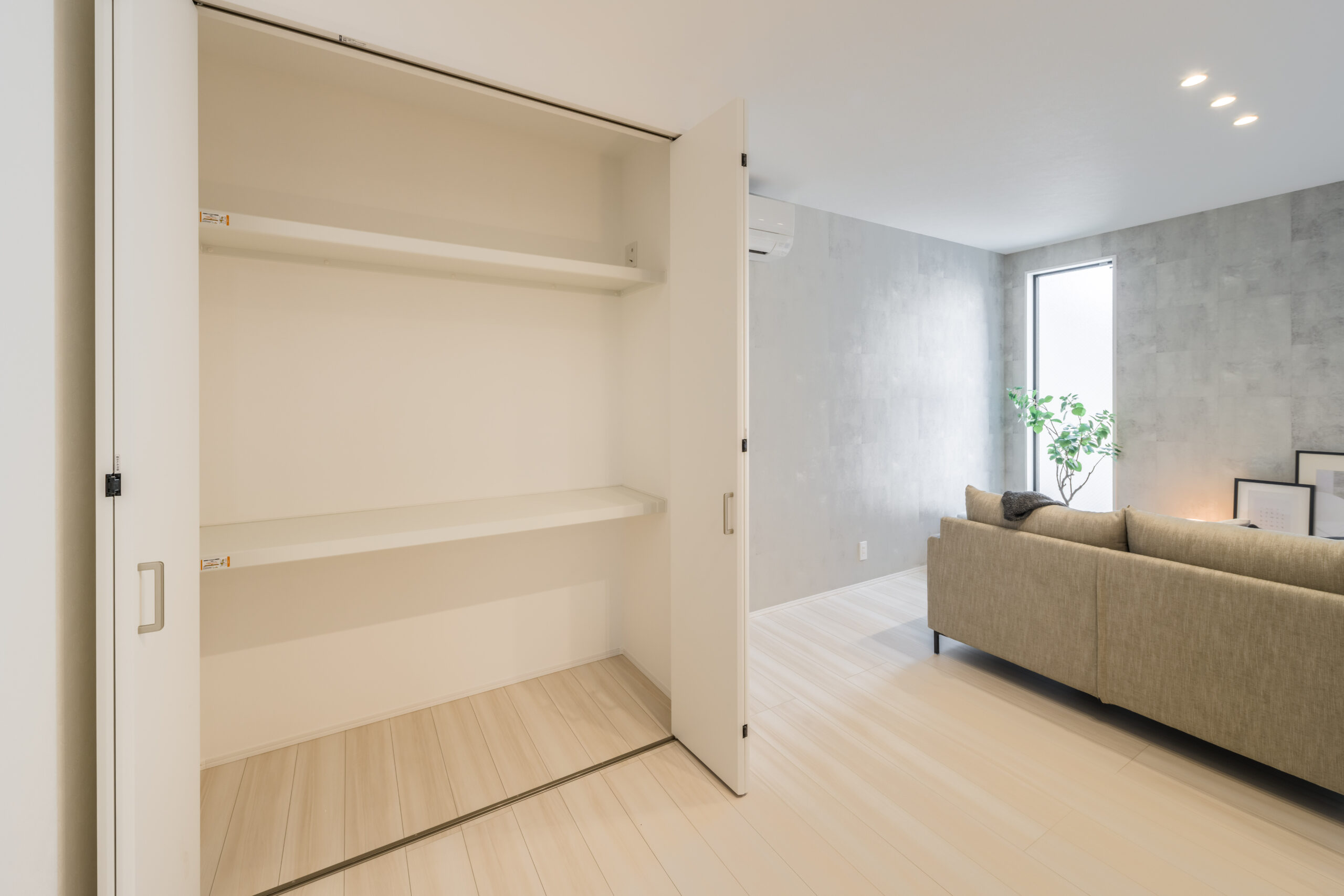 3階の全ての居室にクローゼットを完備しました。衣類や荷物を各部屋ですっきり収納できるため、タンスなどの家具を置く必要がなく、居住スペースを最大限広々と使えます。