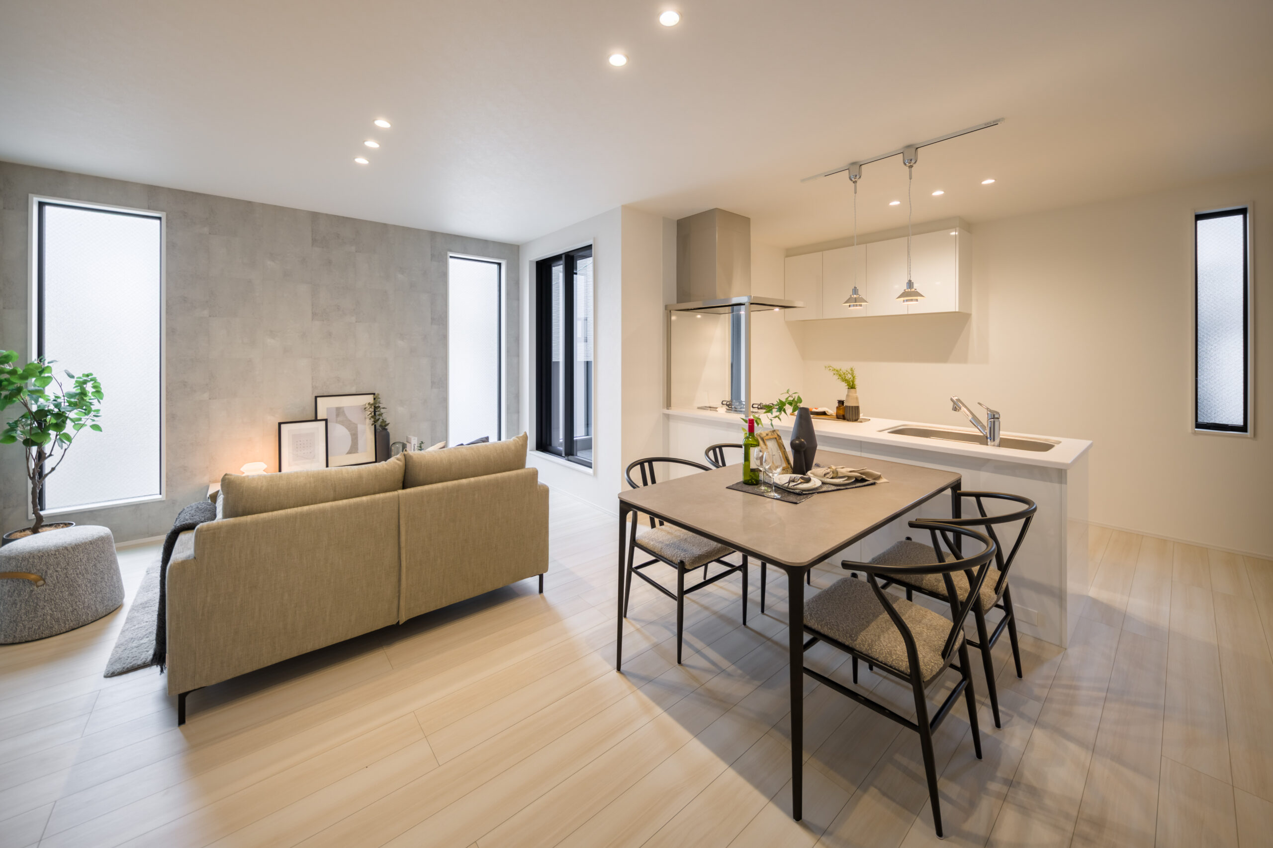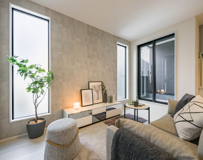 書類や日用品、掃除機など、散らかりがちなアイテムをサッと隠せる収納を完備。急な来客でも慌てず、いつでも生活感のないスタイリッシュなリビングを維持できます。