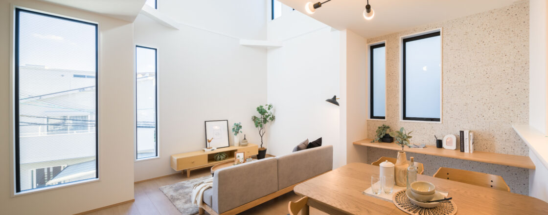 3階建ての住まいでは、2階部分をLDKなど生活の拠点として使うことが多く、周囲の目を気にせず過ごせる憩いの場ができます。建物に高さがあるので、吹き抜けの設置や窓位置の工夫によりとても明るい家が建ちます。