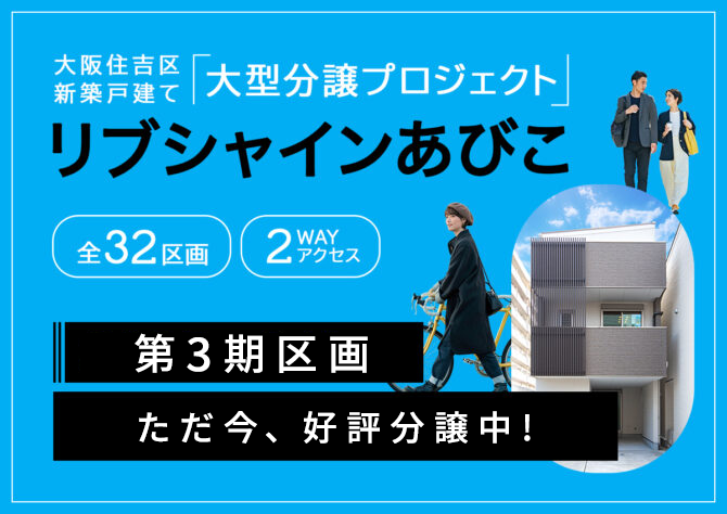 住吉区:32区画の大型オール電化タウン「リブシャインあびこ」