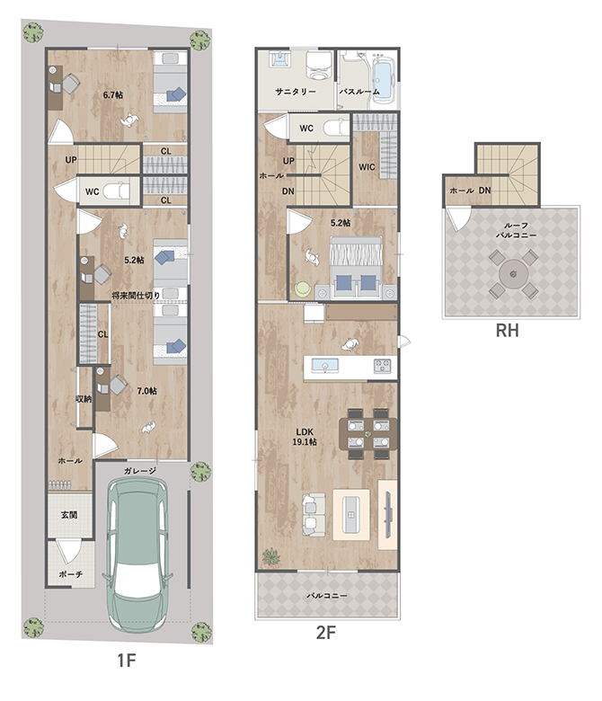 - 「完全自由設計」で思いどおりのお家が建てられます。