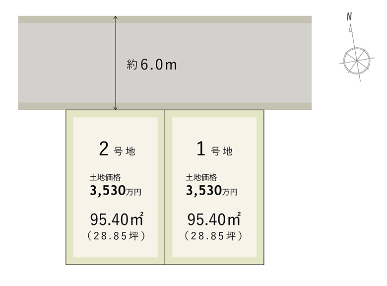 | 2号地 | 95.40㎡(28.85坪)※建築条件付宅地 |