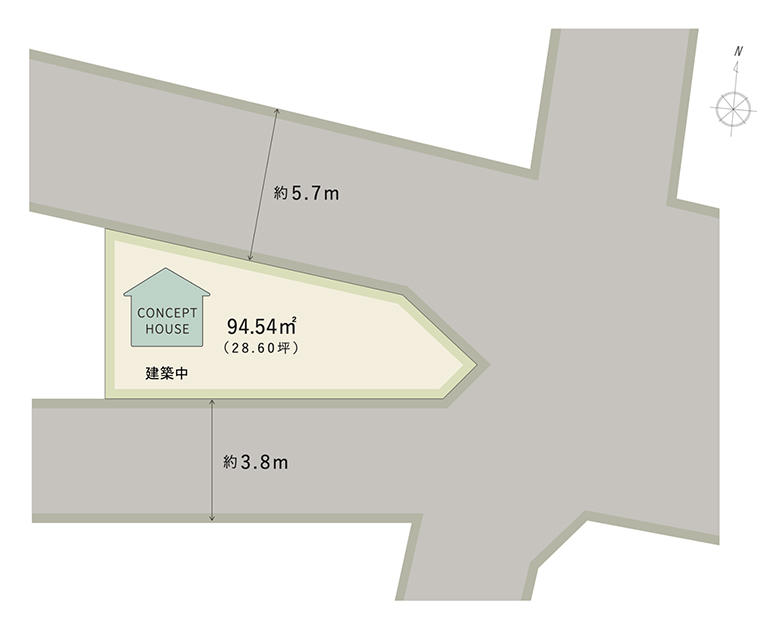 | 1号地 | 94.54㎡(28.59坪)※コンセプトハウス建築中 |