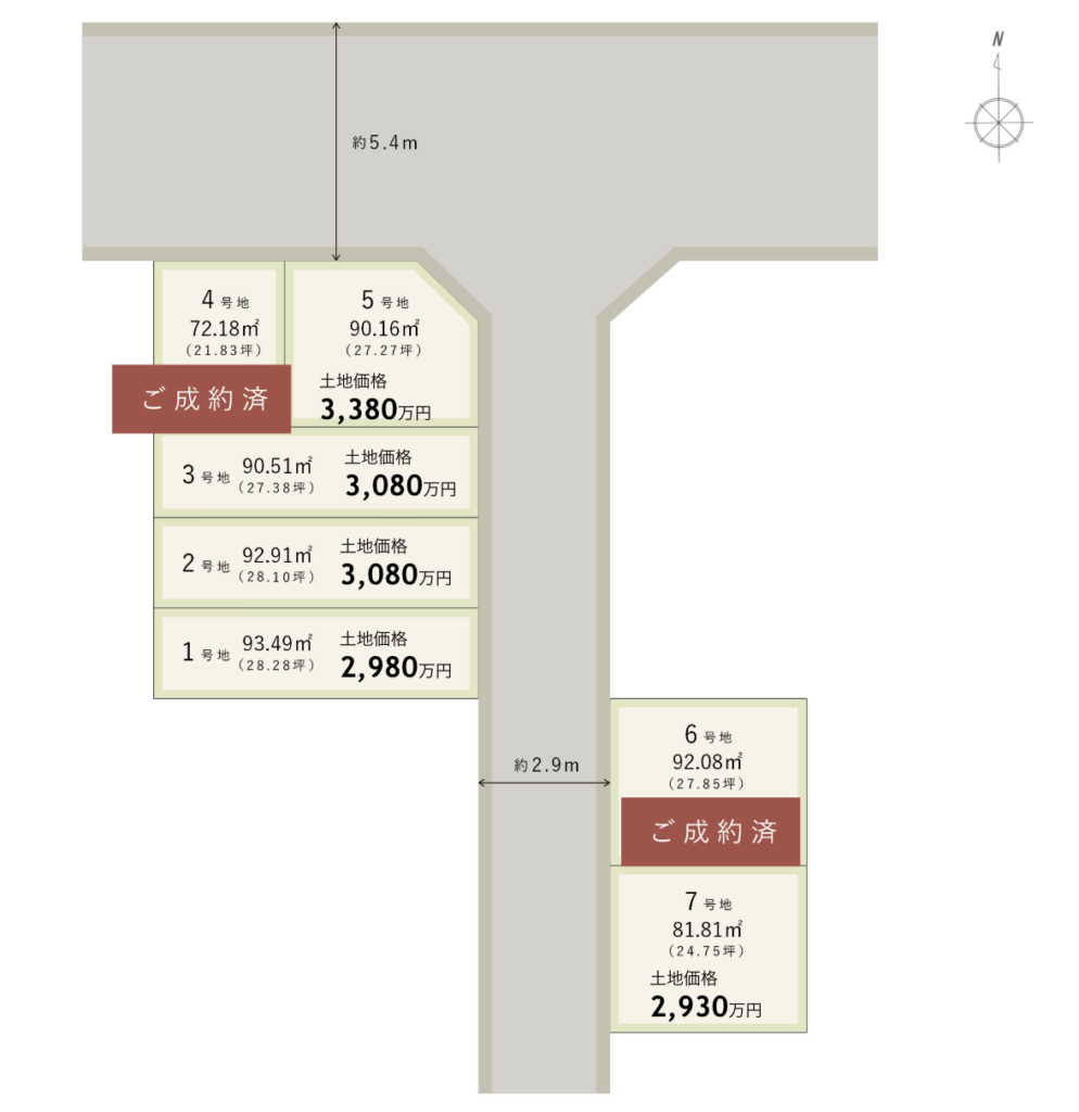 | 5号地 | 90.16㎡(27.27坪)※建築条件付宅地 |