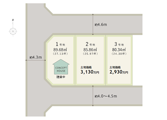 | 3号地 | 80.34㎡(24.30坪)※建築条件付土地 |