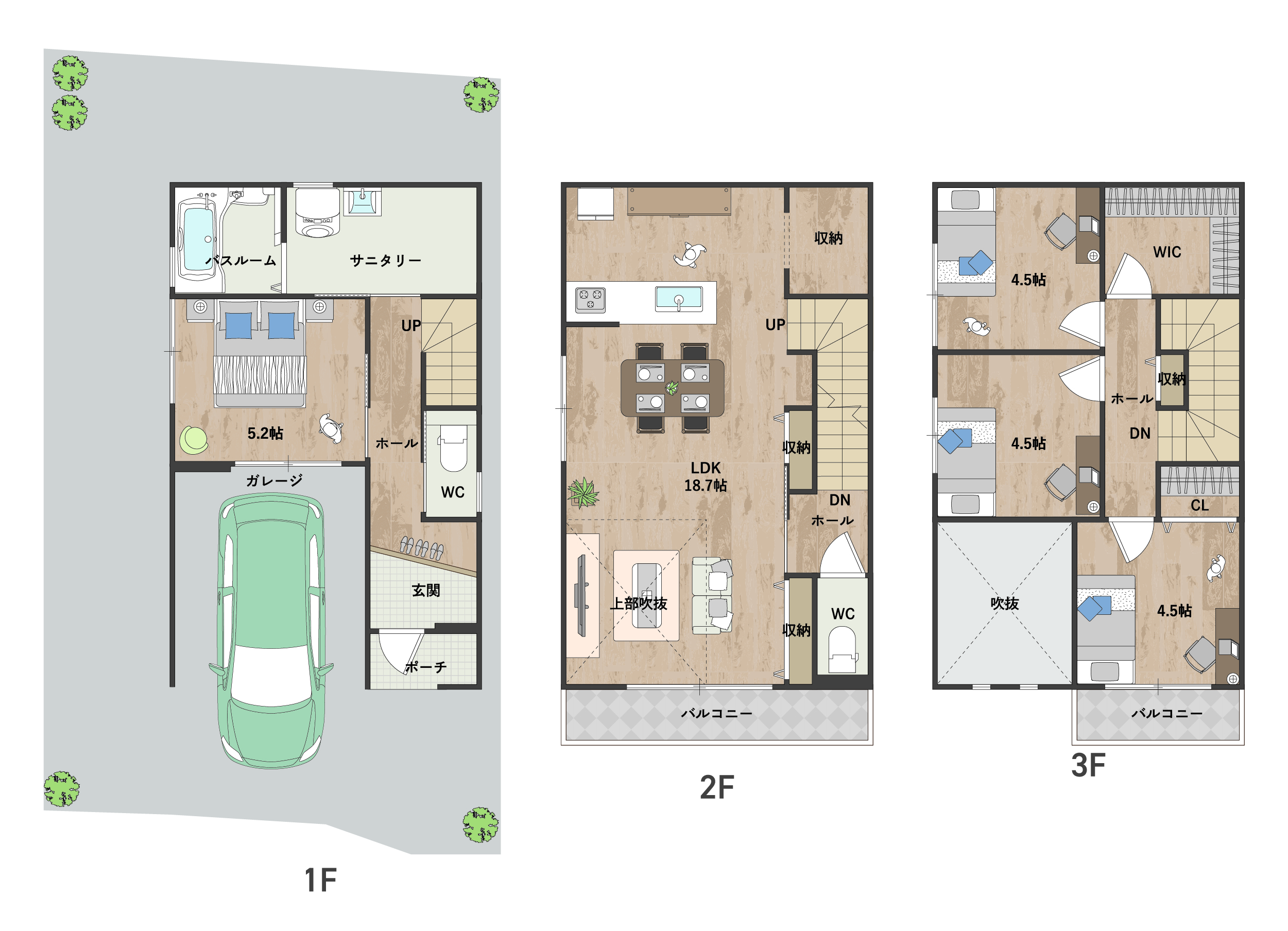 自由設計で建てるご家族の望みが叶う建築プランが充実しています。