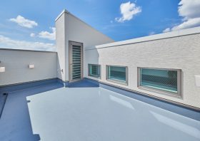 ルーフバルコニーはアウトドアリビングとしてくつろげる場所。窓からはLDKをのぞくことができます。少し高めに設計してある壁にはたくさんの照明があり、コンセントや水栓も用意してあるので昼夜問わずいろんな用途に活用できます。