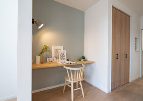 ダイニングにはカウンタースペースを設けました。キッチンから見える位置なので、家事をしながらお子様の勉強を見守ることができます。