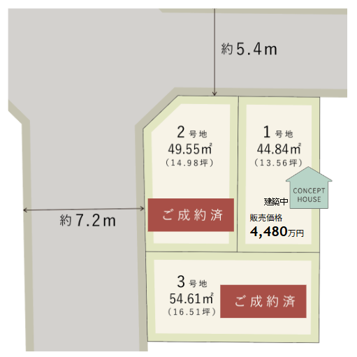 | 1号地 | 44.84㎡(13.56坪)※モデルハウス建築中 |