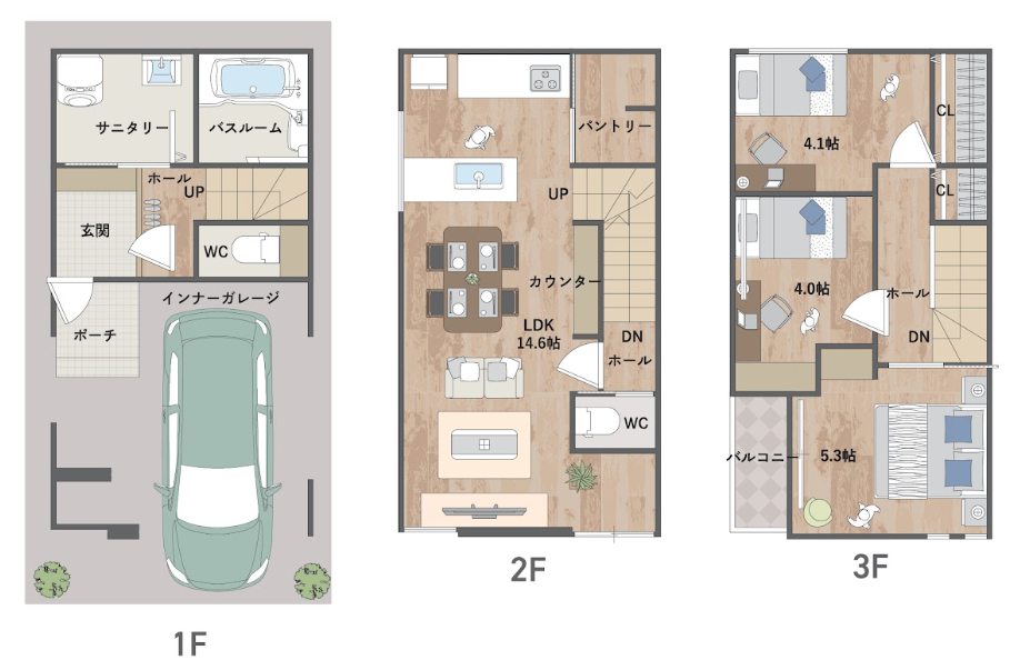 | 3号地 | 54.61㎡(16.51坪)※ご成約済み |
