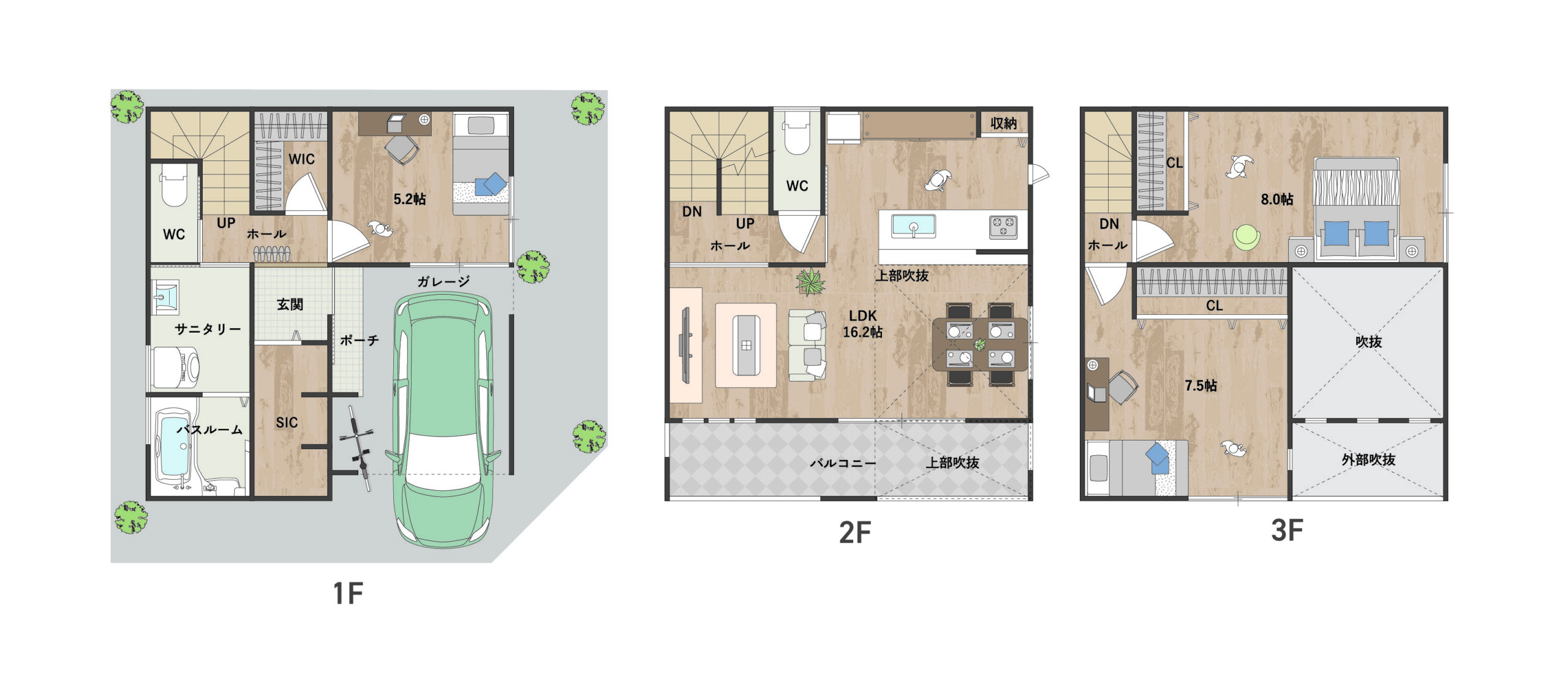 自由設計で建てるご家族の望みが叶う建築プランが充実しています。