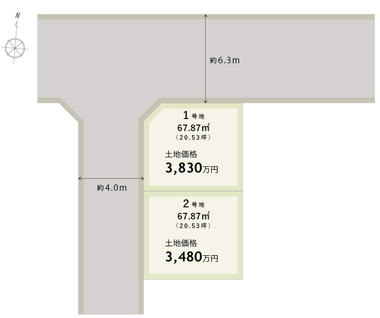 | 2号地 | 67.87㎡(20.53坪)※建築条件付土地 |