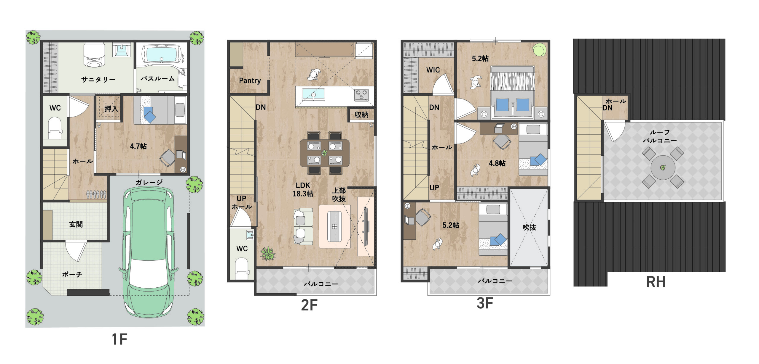 自由設計で建てるご家族の望みが叶う建築プランが充実しています。