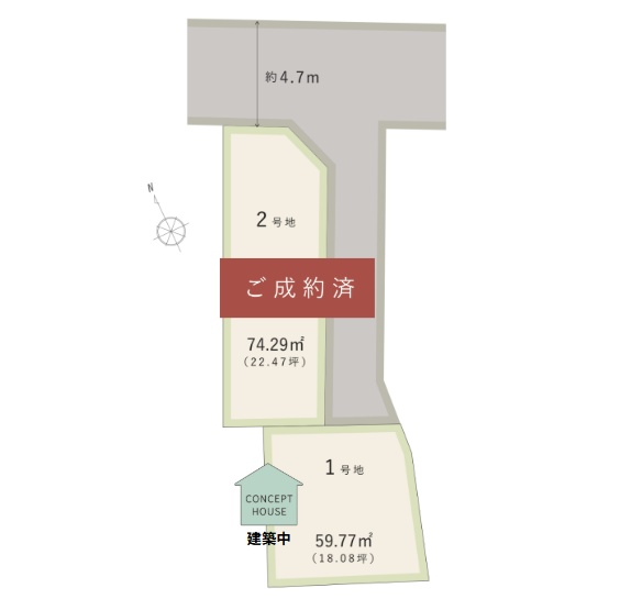 | 1号地 | 59.77㎡(18.08坪)※モデルハウス建築中 |