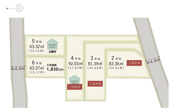 | 4号地 | 92.03㎡(27.84坪)※ご成約済み |