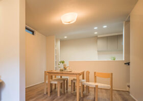リビングにいる家族の様子を見守りながらお料理ができる対面式キッチン。配膳や片付けもスムーズで、家族との会話が弾むコミュニケーション空間です。