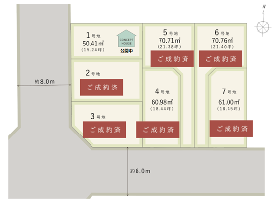 | 7号地 | 61.00㎡(18.45坪)※ご成約済み |