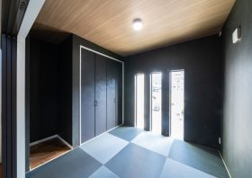 リビングから続く和室は落ち着いたトーンでシックな印象に。LDKと仕切る事も可能なので、客間としても使えます。普段はオープンにしておく事でリビングの延長として子供の遊び場にもなります。