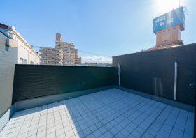 隣地の目線が気になりやすいルーフバルコニー。塔屋を隣家側に配置し、手すり壁の高さを上げることでプライベート空間を確保しました。家族やお友達との憩いの場にしたり、洗濯物を気兼ねなく干すことができます。