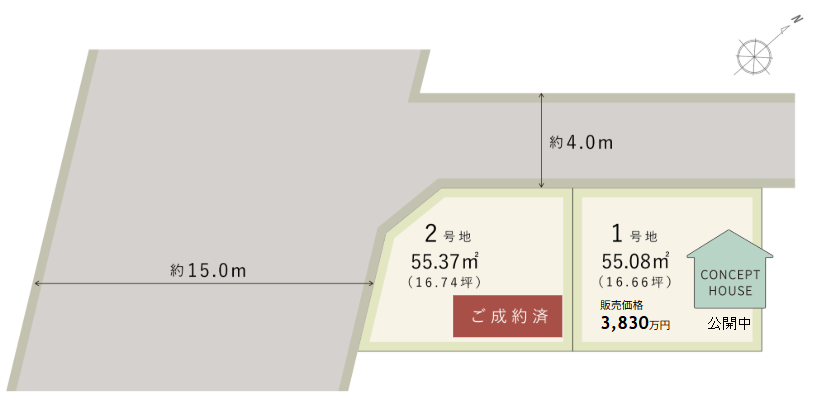 | 1号地 | 55.08㎡(16.66坪) ※コンセプトハウス公開中 |