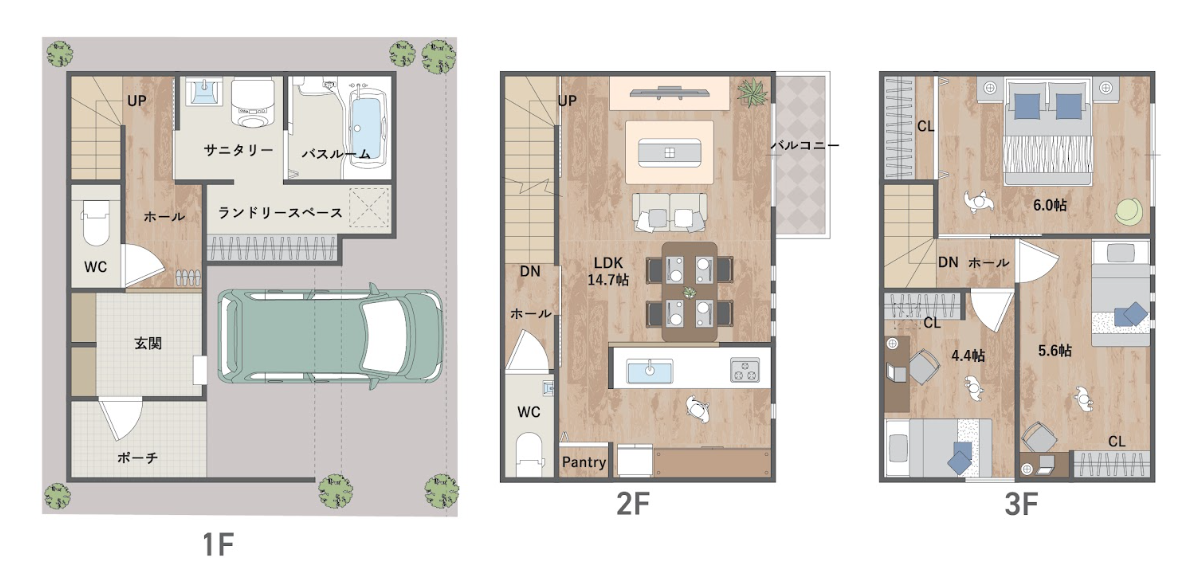 ※自由設計プランは当社の定める構造及び仕様の範囲内で自由に設計できますが、一部お客様のご要望にお応えできない場合があります。※建築条件付宅地とは、土地売買契約後2ヶ月以内に売主もしくは売主の指定する建築会社と工事請負契約を締結することを条件として販売する宅地です。この期間内に工事請負契約が締結されない場合は、土地売買契約は白紙撤回となり、受領済みの金員は全て返還されます。