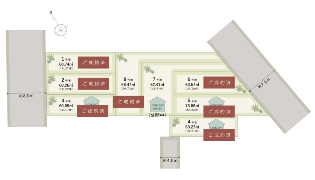 | 8号地 | 68.47㎡(20.71坪)※ご成約済み |