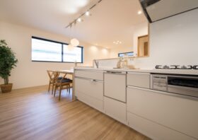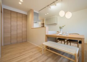 キッチンとダイニングが横並びに配置できるので、作った料理を最短距離で配膳でき、後片付けもスムーズです。調理中もご家族と対面で会話が弾み、家事の時間を楽しい団らんのひとときに変えてくれます。