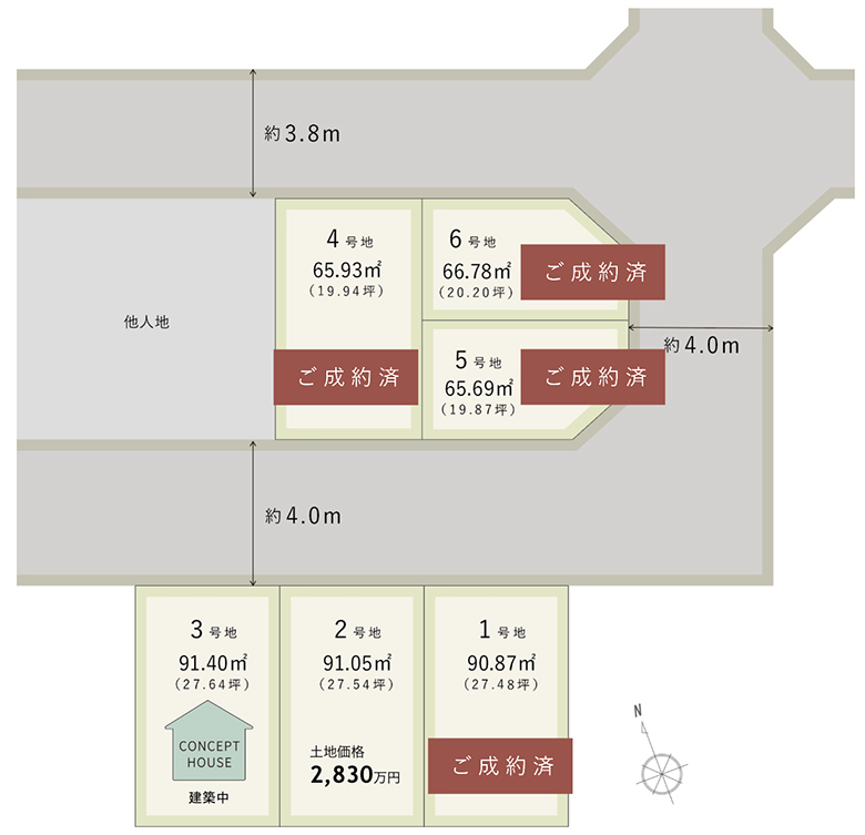 | 4号地 | 65.93㎡(19.94坪)※ご成約済み |