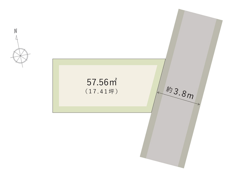| 57.56㎡(17.41坪) ※建築条件付宅地 |
