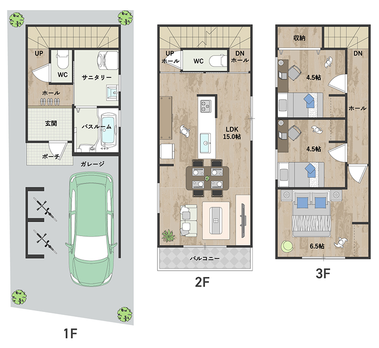 スペースを無駄にしない工夫でゆったり暮らせる都市型3階建て