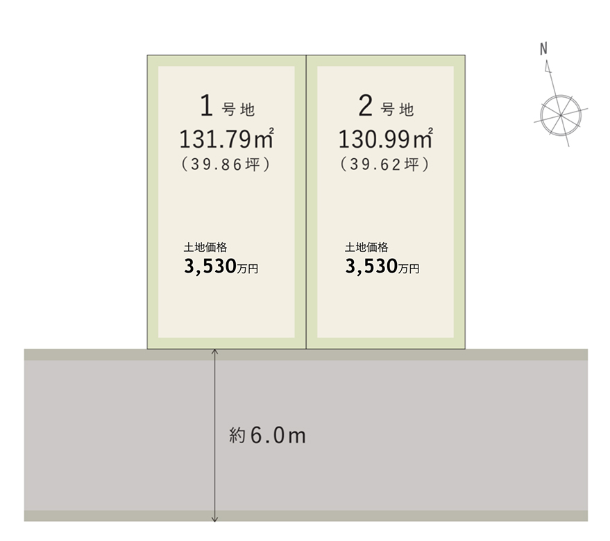 | 1号地 | 131.79㎡(39.86坪)※建築条件付土地 |