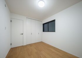 洋室に収納スペースを設けました。衣類はもちろん、かさばる布団もしっかり収まるため、お部屋を広々と有効活用できます。